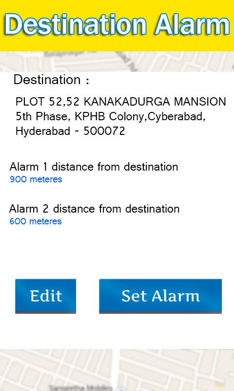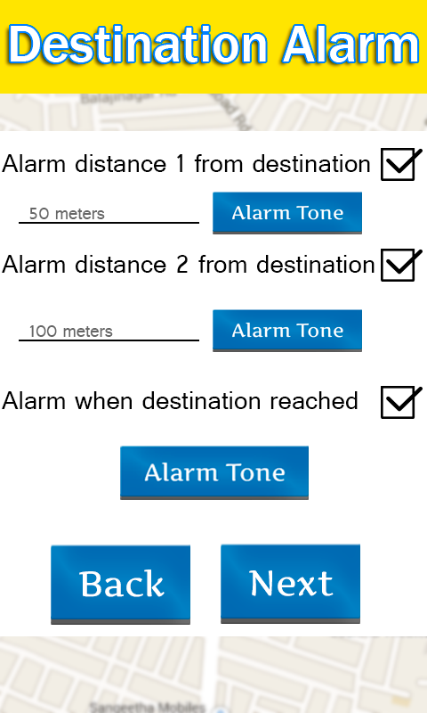 Destination Alarm will notify you when you are near to your destination or when you reach the destination.
