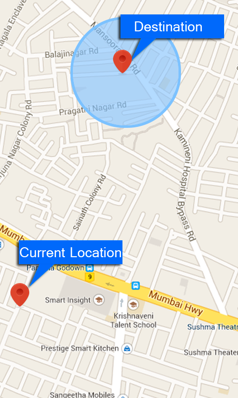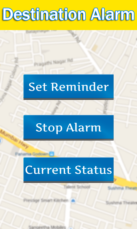 • Set your Destination with a single touch on Google Maps.• Set the alarm at prior to reaching the destination by giving the distance from destination point.