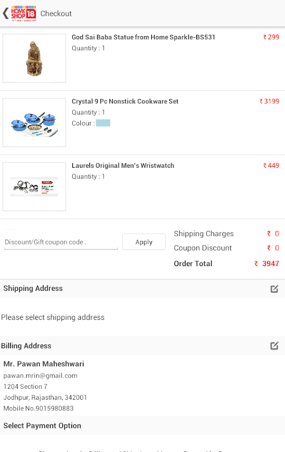 • Use your existing HomeShop18 account to sign in, make payments and select shipping options.
