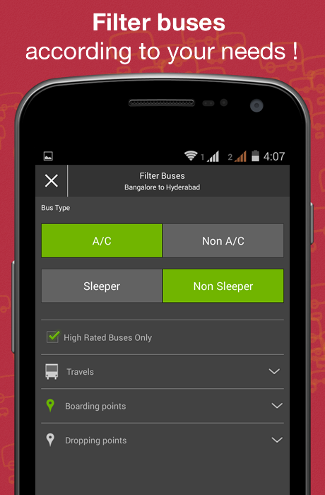 The app puts your boarding point on the map letting you track the bus real time. It will also provide you with timely and relevant tips to help improve your journey. Your transactions are 100% secure (SSL based) for payments made through credit / debit cards and net banking. You can also book cash on delivery tickets. So go ahead and book your bus tickets with ease of mobile and power of redBus.in.